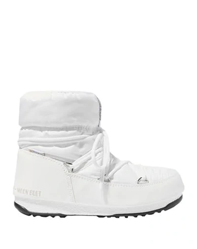 MOON BOOT Ankle boots. coated fabric, techno fabric, logo, solid color, laces, round toeline, flat, internal padding, rubber sole, lifestyle. Textile fibers