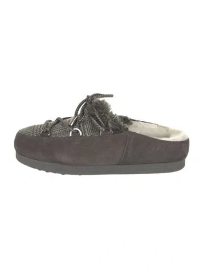 Moon Boot Suede Mules Grey Rubber & Shearling Trim Round-Toes Platform Lace-Up Closure at Uppers Includes Box & Dust Bag | Moon Boot Suede Mules in Grey, Women's 6