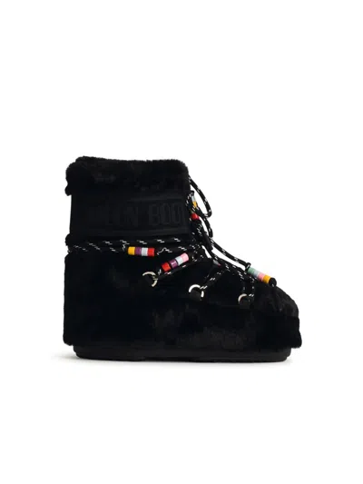 Made of polyester and suede blend, framed by laces with colorful beads, metal inserts, tone-on-tone logo band. MOONBOOT. MOON BOOT 'ICON' BLACK POLYESTER BLEND.