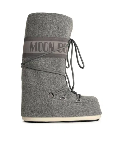 High neck with drawstring, tone-on-tone logo band, tubular laces with metal eyelets. MOONBOOT. MOON BOOT 'ICON' IN GREY FABRIC.