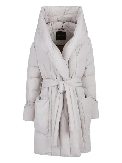 beige quilted design wrap fastening wide lapels self-tie belt long sleeves