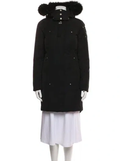 Moose Knuckles Down Coat Black With Hood Fur Trim & Stand Collar Knee-Length Slit Pockets & Zip Closure Fit: Coats by Moose Knuckles typically fit true to size. | Moose Knuckles Down Coat in Black, Women's XS