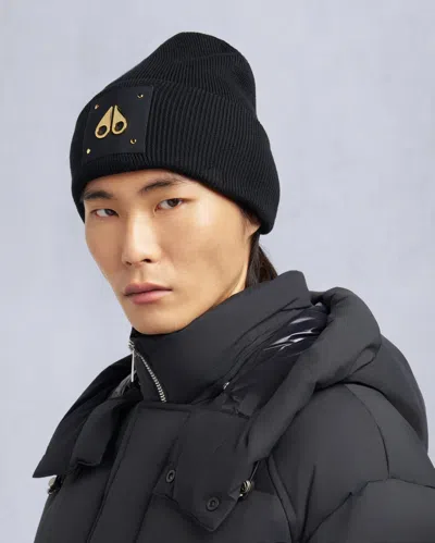 MOOSE KNUCKLES Gold Series Logo Icon Beanie In Black
