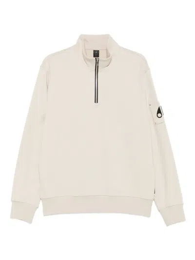 MOOSE KNUCKLES Half-zip Logo-patch Sweatshirt In Neutral
