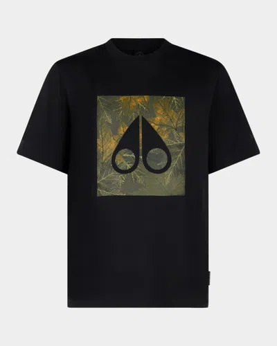MOOSE KNUCKLES Leaf-print T-shirt In Black