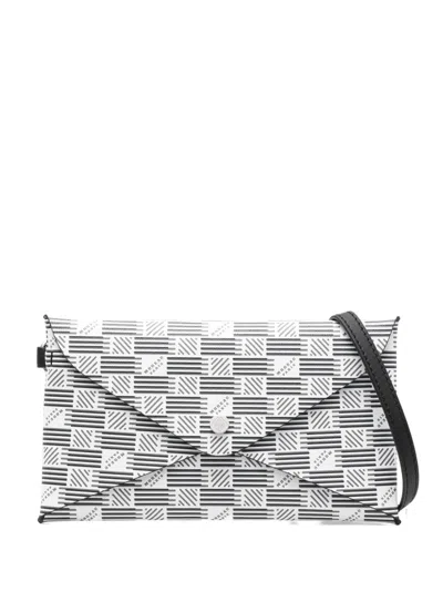 white geometric pattern detachable wrist strap snap fastening silver-tone hardware top flap. Colour. : White, Black. Composition. : Calf Leather: 100.0%. Country Of Manufacture. : Bangladesh. MPN. : ORIGPOORIGAMIWHNA. .