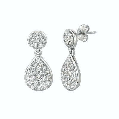 Pre-owned 1.15 Carat Natural Diamond Pear & Round Shape Drop Earrings Si 14k White Gold