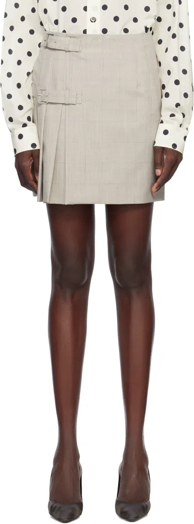 Virgin wool delaine miniskirt. Check pattern throughout. · Wrap construction · Button fastening at waist · Two-pocket styling · Pin-buckle straps at front · Knife pleats at front · Partially lined Supplier color: Multi/Beige