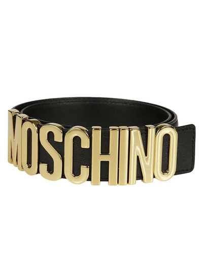 Pre-owned Couture Jeremy Scott Shiny Black Leather Belt With Gold Lettering Logo In Gold/black