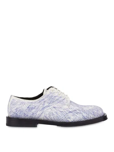 Moschino - Derby in printed canvas - White - 41Derby in printed canvas with a design that recalls the timeless charm of traditional men's footwear. Innovative and playful, the print replicates doodles created on paper with a blue pen. The combination of the full-grain leather sole, the soft calfskin mUpper: 100% Cotton - Bottom: 70% Calfskin, 30% Rubber - Lining: 100% Calfskin