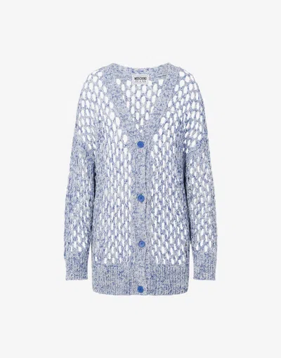 Moschino Jeans - Knit cardigan - Blue - LOpenwork knitted cotton cardigan with a mélange effect print. Dropped shoulders emphasize the soft and relaxed fit.Fabric: 74% Cotton, 26% Polyamide