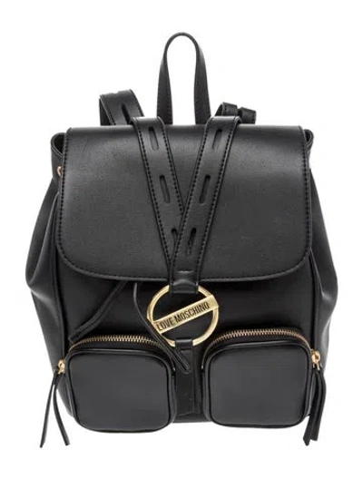 Moschino Backpack Black Leather Gold-Tone Hardware Rolled Handles & Single Shoulder Strap Single Exterior Pocket Leather Lining & Single Interior Pocket Flap Closure at Top Unfortunately, due to restrictions, this item may not be eligible for shipping in all areas. | Moschino Leather Backpack in Black