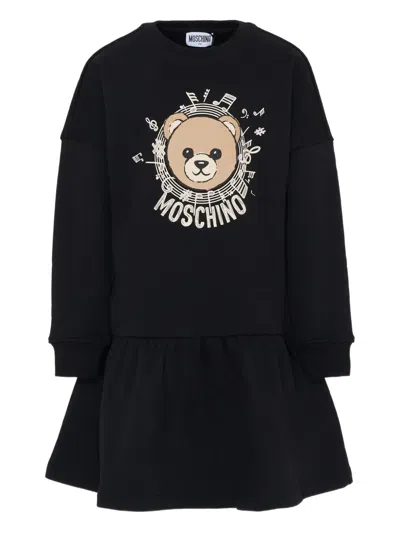MOSCHINO Kids' Long-sleeve Graphic Dress In Black