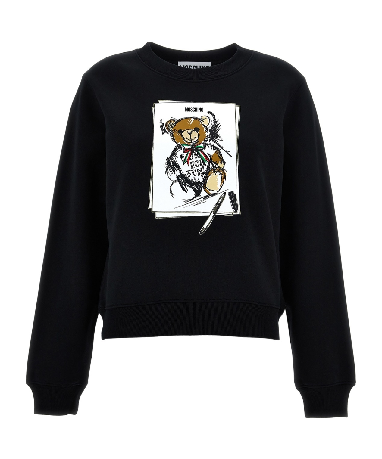 black/multicolour cotton signature Teddy Bear motif crew neck long sleeves ribbed cuffs and hem