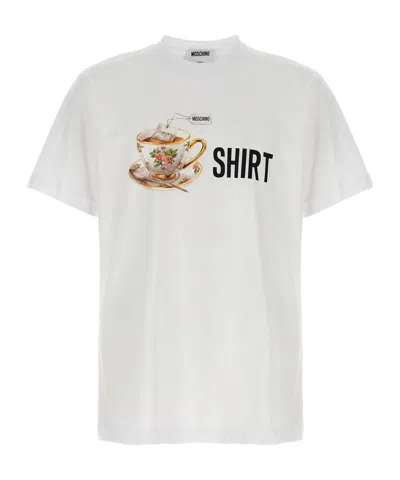 MOSCHINO Crew Neck Graphic Print Short Sleeves In White