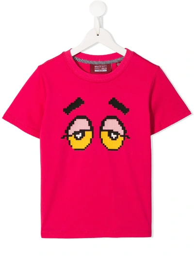 Hot pink cotton Tiny Drowsy T-shirt from Mostly Heard Rarely Seen 8-Bit featuring a crew neck, short sleeves, a straight hem and a stretch fit.