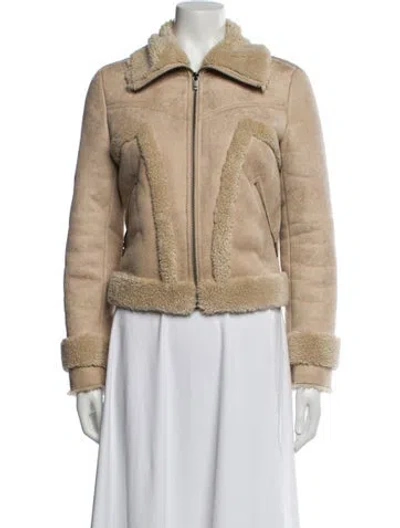 Mother Biker Jacket Neutrals Fur Trim & Pointed Collar Zip Pockets & Zip Closure Fit: Jackets by Mother typically fit true to size. | Mother Biker Jacket in Neutrals, Women's XS