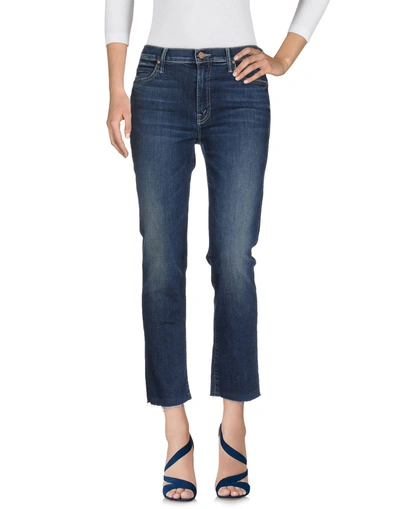 denim, faded, logo, solid color, dark wash, mid rise, front closure, button, zip, multipockets, raw-cut hem, straight-leg pants , Color: Blue , Size: 30