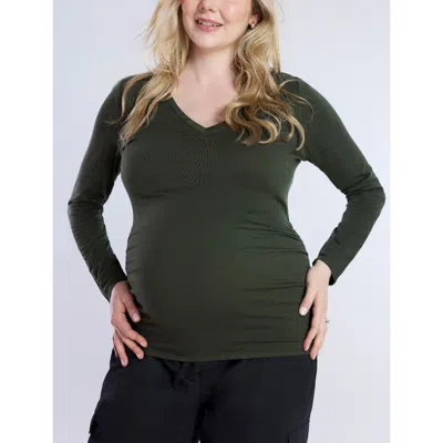MOTHERHOOD MATERNITY V-neck Side-ruched Maternity Long Sleeve Tee In Deep Depths