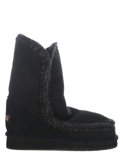 Mou boots "Eskimo 24" made of genuine black suede sheepskin. Tone-on-tone crochet wool stitching. Round toe. Sheepskin lining. "Mou" logo patch applied on the back. Reinforced heel. EVA rubber sole. Regular fit. Height 24cm. Sole 100% Rubber. 100% Leather.