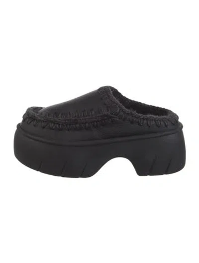 Mou Leather Mules Black & Blue Round-Toes Platform Includes Box Unfortunately, due to restrictions, this item may not be eligible for shipping in all areas. | Mou Leather Mules in Black/Blue, Women's IT 37 | 7