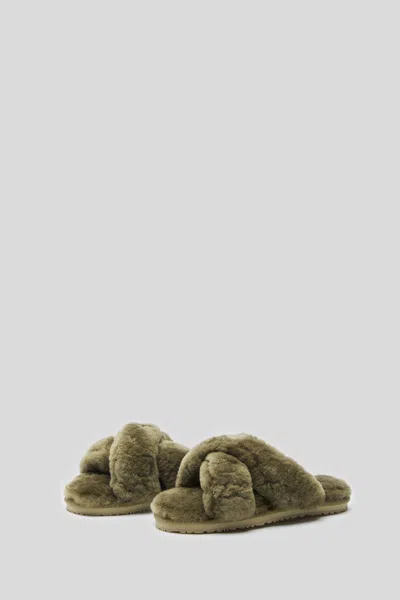 MOU Pantofola Incrociata In Montone Verde Militare In Gray