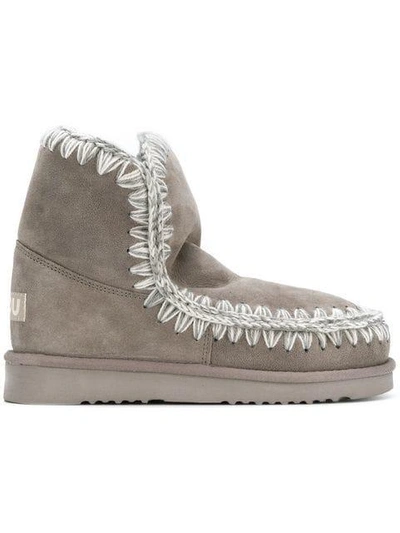 Discover these stylish Mou Boots Grey for women. Made with 100% Leather, these ankle boots feature a round toe design and a flat rubber sole. Perfect for any occasion, they are comfortable and trendy. Add a touch of elegance to your outfit with these high-quality boots from the renowned brand MOU.