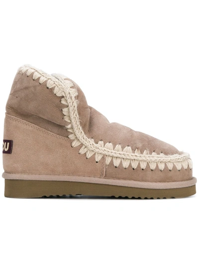 Beige shearling whipstitched boots from Mou.