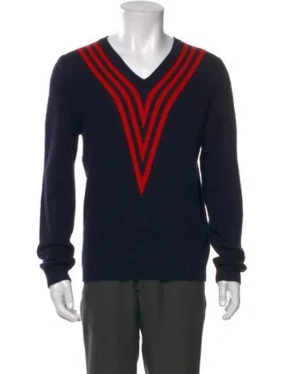 Pre-owned Lambswool Striped Pullover In Blue