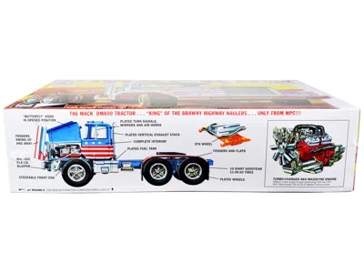 Brand new 1/25 scale plastic model kit of Mack DM 800 Semi Tractor Truck (Skill 3) 1/25 plastic model kit by MPC. Brand new box. 5th wheel. Plated wheels. Plated fuel tank. Black vinyl tires. Complete interior. Fenders and flaps. Steerable front end. Colorful decal artwork. Massive plated bumper. Vintage style packaging. Officially licensed product. Chrome plated small parts. Fenders swing up and away. Plated vertical exhaust stack. 10 giant Goodyear 11.00-20 tires. "Butterfly" hood in opened position. Turbo-charged 865 maxidyne engine. Plated turn signals, mirrors, and air horns. Paint and cement required (not included). Manufacturer's original unopened packaging. Parts molded in WHITE, unless otherwise indicated. "Chrome" trim detail can be striped on with silver paint.