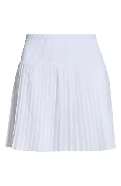 A ribbed waistband adds comfort and shape to this sporty skort accented with sharp accordion pleats. 3 1/2" inseam; 18" leg opening; 14" front rise; 14 1/2" back rise Elastic waist Partially lined 92% recycled polyester, 8% spandex Machine wash, tumble dry Imported