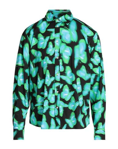 butterfly print shirt from MSGM featuring black/multicolour, cotton, butterfly print, classic collar, front button fastening, long sleeves and curved hem.