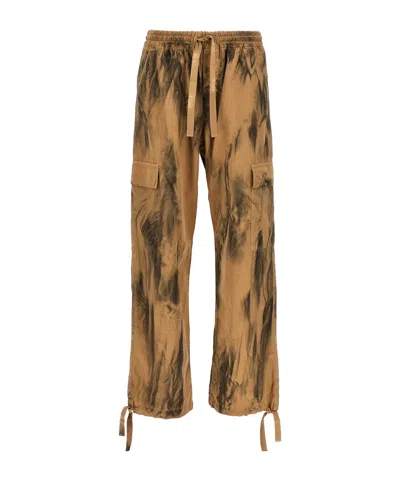 MSGM Cargo Pants Tie-dye Pattern In Beige