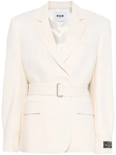 MSGM Belted Blazer In Neutrals