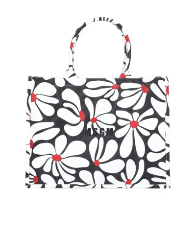 This MSGM canvas tote bag showcases a bold black and white floral design with red accents, creating a vibrant statement piece. Practicality is at its core, featuring two sturdy handles and a spacious main compartment ideal for everyday use. A contrasting logo on the front enhances its modern sophistication, making it a must-have accessory for the contemporary woman. Black and white floral pattern Red accents Two sturdy handles Spacious main compartment Contrasting logo on the front