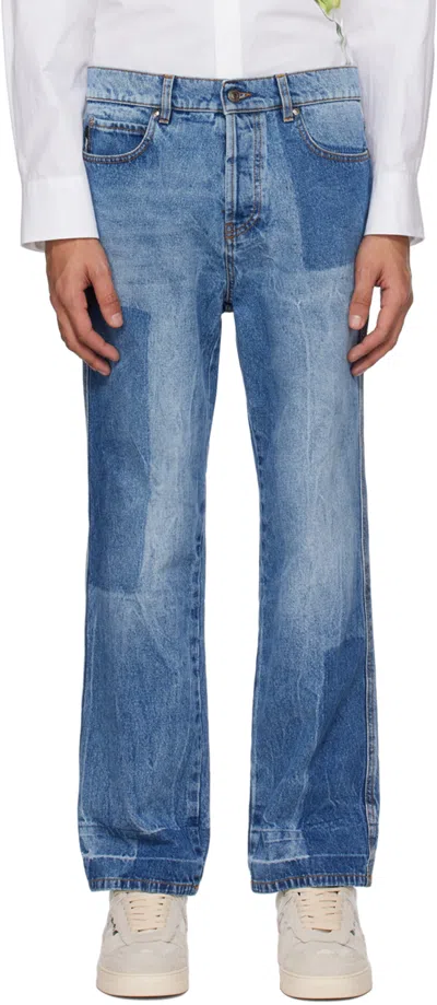 MSGM Blue Reserve Patchwork Jeans In 88 Blue