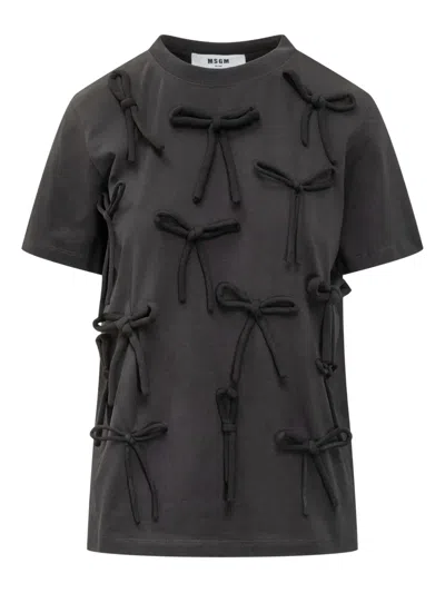 MSGM Bow-embellished T-shirt In Multi