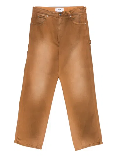 MSGM Brown Cotton Trousers With A Worn Effect
