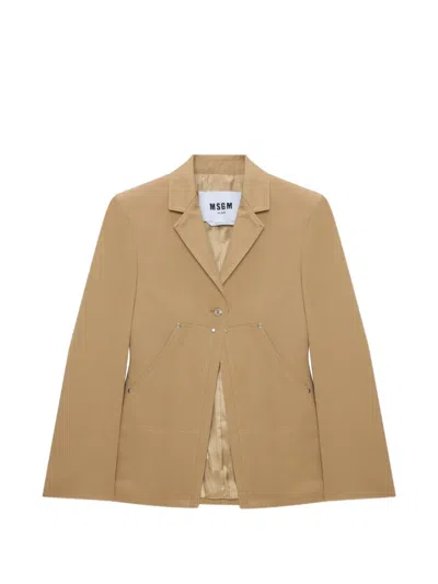 MSGM Button-fastening Blazer In Brown