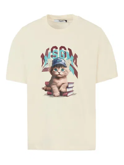 MSGM Cat-print Short-sleeve T-shirt In Neutral