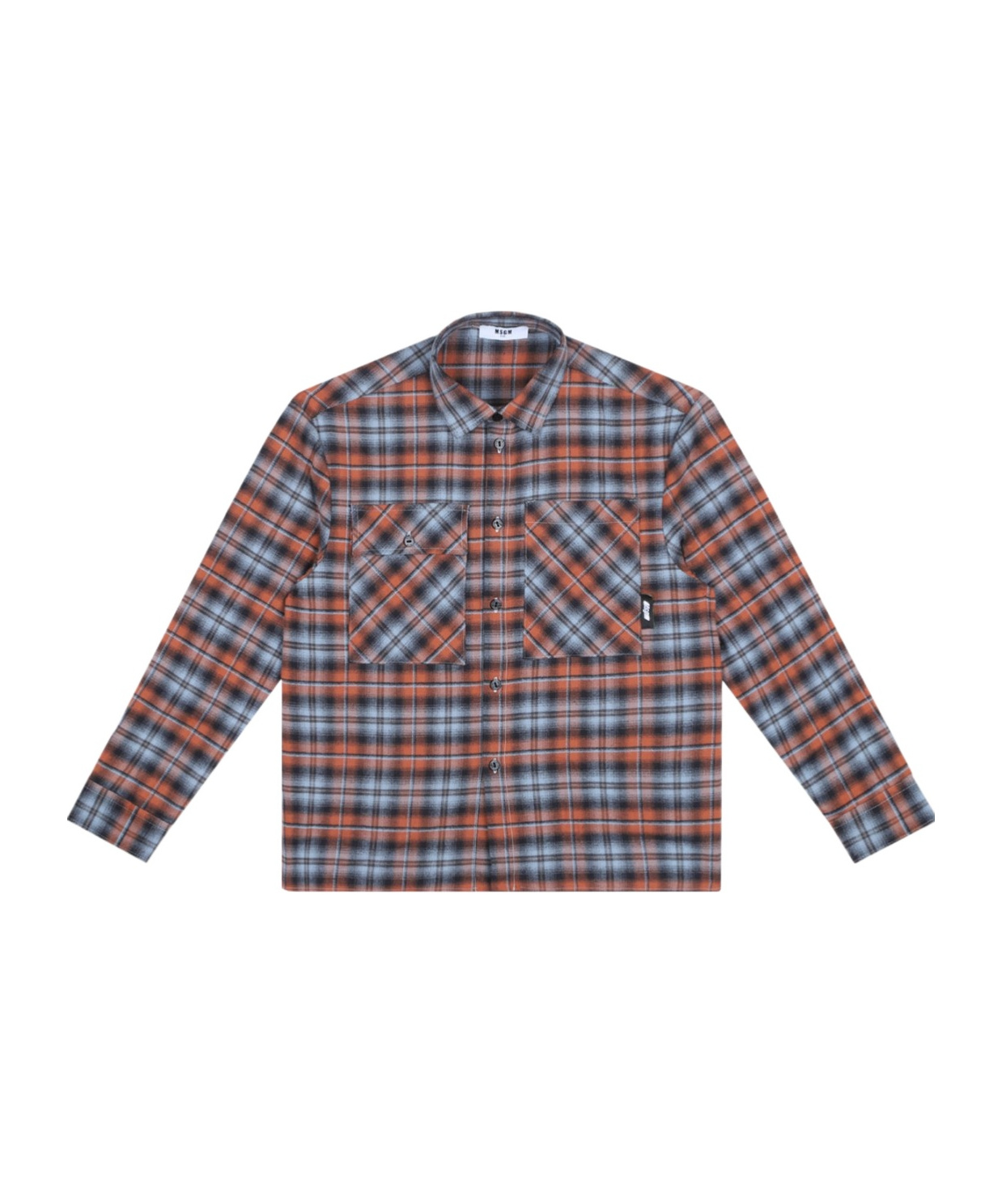 Plaid print, front buttons open and closed, classic collar, long sleeves, two chest patch pockets, buttons on the cuffs, and logo printed on the back.