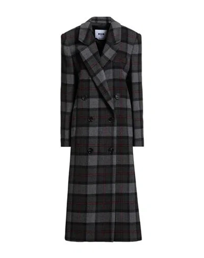 MSGM Checked Print Double-brested Coat In Multi