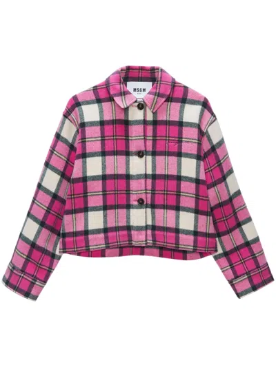 MSGM Checkerboard-print Cropped Jacket In Pink