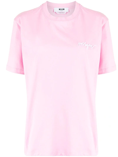 MSGM Chest-logo Crew Neck T-shirt In Pink