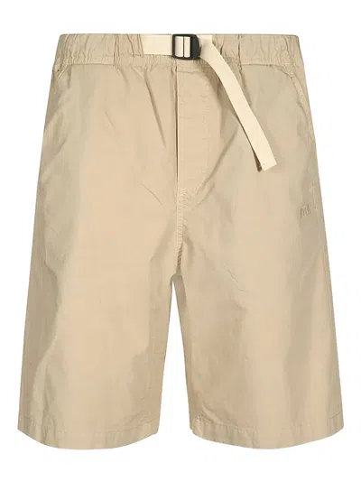 beige drawstring fastening side pockets buckle belt logo label cotton fabric