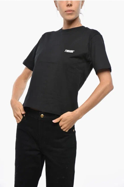 MSGM Cotton Crew-neck T-shirt With Logo Patch In Black