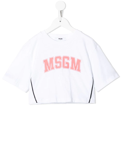 MSGM Kids' Cropped Logo-print T-shirt In White