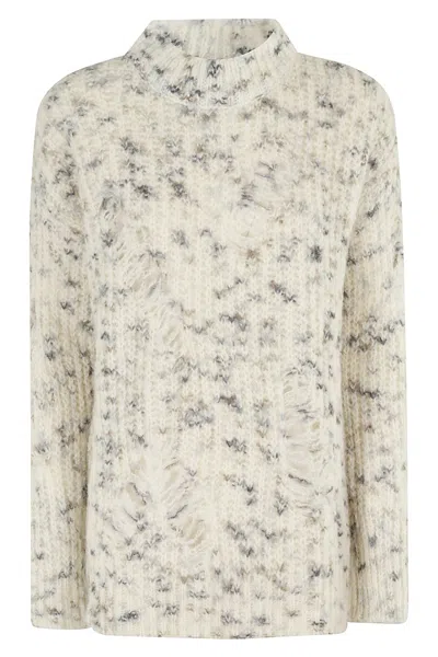 MSGM Beige Oversized Sweater With Grey Yarn Inserts In White
