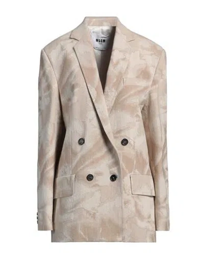 MSGM Double-breasted Blazer In Beige