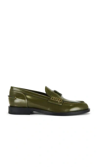 MSGM Flat Loafer in Green. Size 39. Also in 37, 38, 40. MSGM Flat Loafer in Green. Size 37, 38, 40. Patent leather upper with leather sole. Slip-on styling. Leather footbed and lining. Signature penny loafer strap with tonal logo charm. Approx 13mm/ 0.75 inch heel. MSGX-WZ12. 3941MDS152 954.